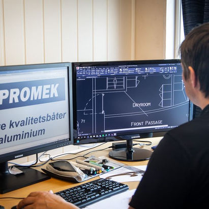 PROMEKs produksjonsprosess kan deles inn i fire hovedstadier før levering til kunde. Ingeniørene tar for seg klasse- og arbeidstegninger, design og konstruksjon samt beregninger og GA-tegninger. Dette stadiet innbefatter etter hvert plateskjæring, som overlappes inn i byggestadiet.